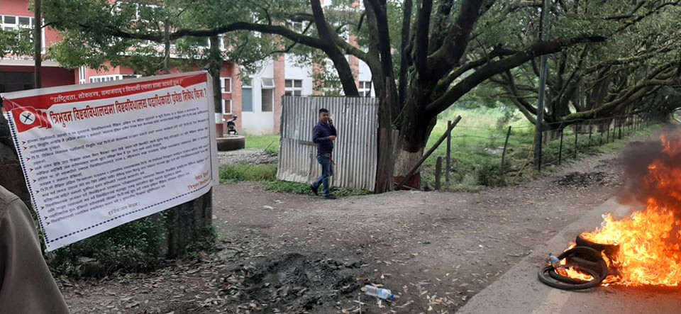 शुक्रबार नेविसंघले उपकुलपतिलगायत पदाधिकारी प्रवेशमा अवरोध गरेको हो। उपकुलपति कार्यालय अगाडि सडकमा टायर बालेर नेविसंघ त्रिवि समितिले प्रदर्शन पनि गरेको थियो।
