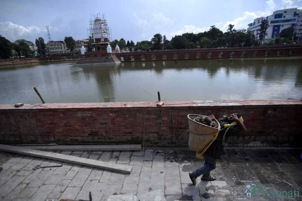 ‘म सम्पदाको ज्ञाता होइन, तर जसरी काम भइरहेको थियो, त्यो गलत हो भन्ने बुझ्न ज्ञाता हुनै पर्दैन। पोखरीको सामान्य ज्ञान भए पुग्छ,’ उनले भने, ‘अरे बाबा, मन्दिर पो भत्किएको, केही हुँदै नभएको पोखरी सुकाएर के जात्रा गर्या? कालो माटो झिकेर कंक्रिटले टालेपछि पानी कहाँबाट आउँछ, कहाँबाट जान्छ? पानी आउजाउ नै बन्द गरेपछि पोखरी, पोखरी कसरी भयो?’