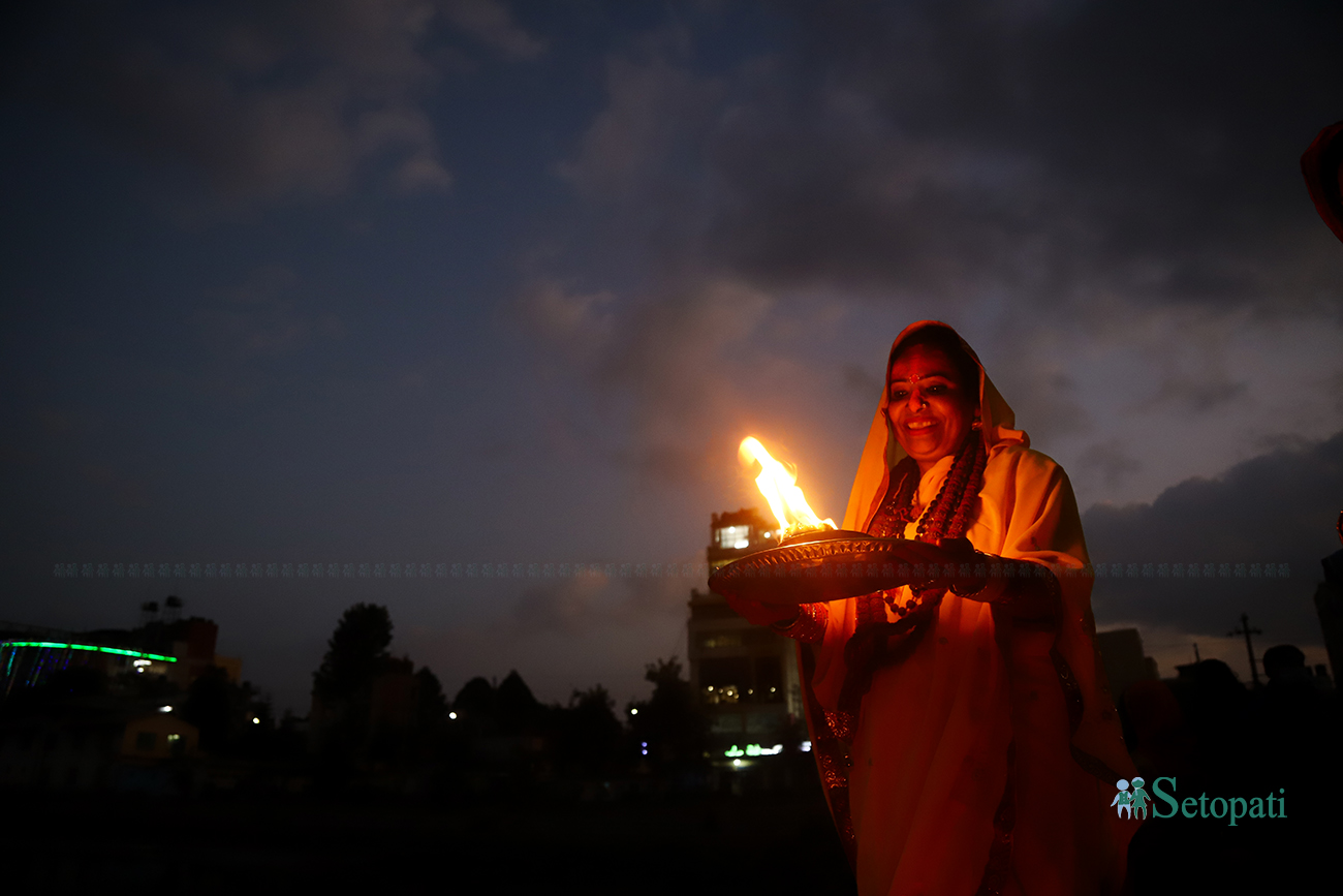 आज रातभर नदी किनारमा हालिएको पालमुनि जाग्राम बसेर बिहान उदाउँदो सूर्यलाई अर्घ्य दिने परम्परा छ।
