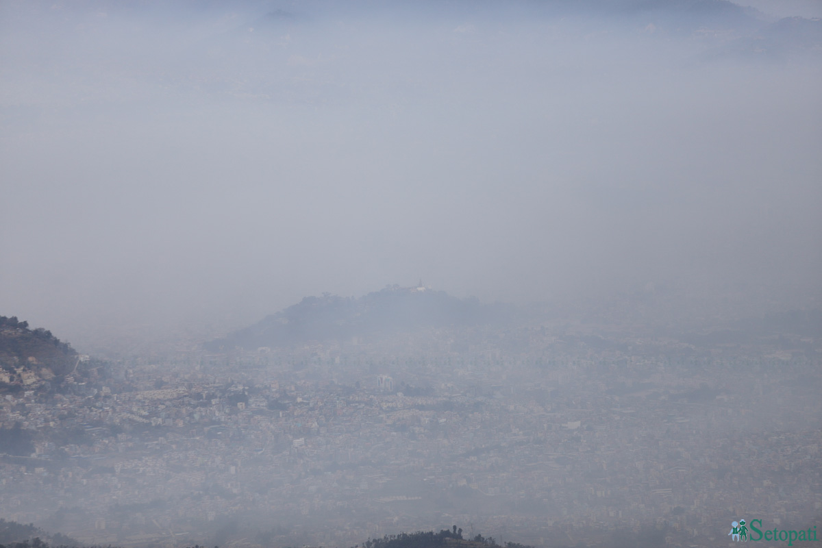 काठमाडौंमा बढ्दो सहरीकरण, पेट्रोल–डिजेलबाट चल्ने सवारी साधनले फाल्ने धुँवा, विकास निर्माणको क्रममा उड्ने धुलो र आगलागीले प्रदूषण बढाएको छ।