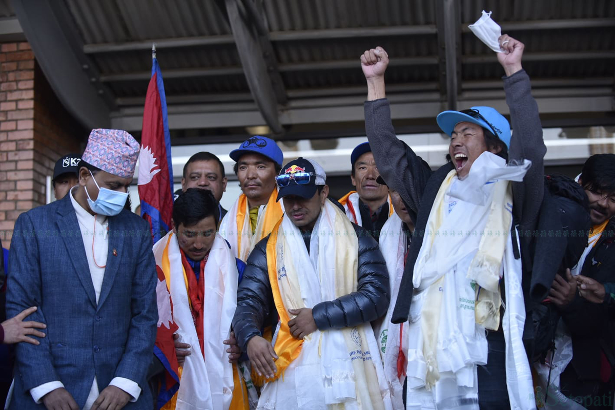 आरोही निर्मल पुर्जासहितको नेपाली आरोहण टोली मंगलबार बिहान त्रिभुवन अन्तर्राष्ट्रिय विमानस्थल आइपुगेका छन्।