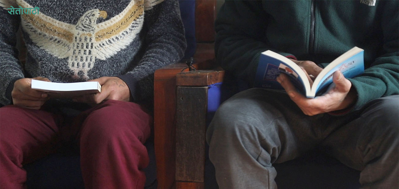 ‘बाहिर बसेर काम गर्दा हाम्रो फुर्सद पनि हुन्न, थिएन। यहाँ बस्दा फुर्सद छ। फुर्सदमा यतिकै बस्नुभन्दा पनि थाहा नभएको कुरा बुझ्दा राम्रै होला भनेर किताब माग्यौं,’ उनले भने, ‘किताब पढेपछि दिमाग फ्रेस हुन्छ। थाहा नभएको कुरा सिक्न पाइन्छ र जिन्दगीमा अघि बढ्न सकिन्छ। हौसला दिन्छ भनेर पनि किताब माग्यौं।’