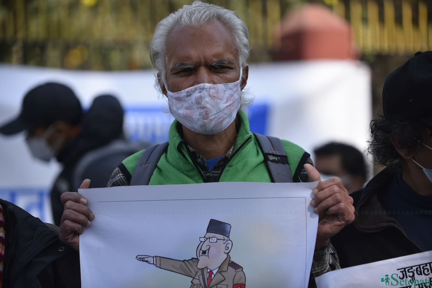 संसद विघटनविरूद्ध वृहत नागरिक आन्दोलनले आइतबार पनि विरोध प्रदर्शन जारी राखेको छ। काठमाडौंको सिफलस्थित सहिद धर्मभक्त माथेमाको शालिक अगाडि भेला भएर लेखक, कवि, कलाकार, पत्रकारलगायतका अभियन्ताले संसद विघटनको विरोधमा प्रदर्शन गरेका हुन्।