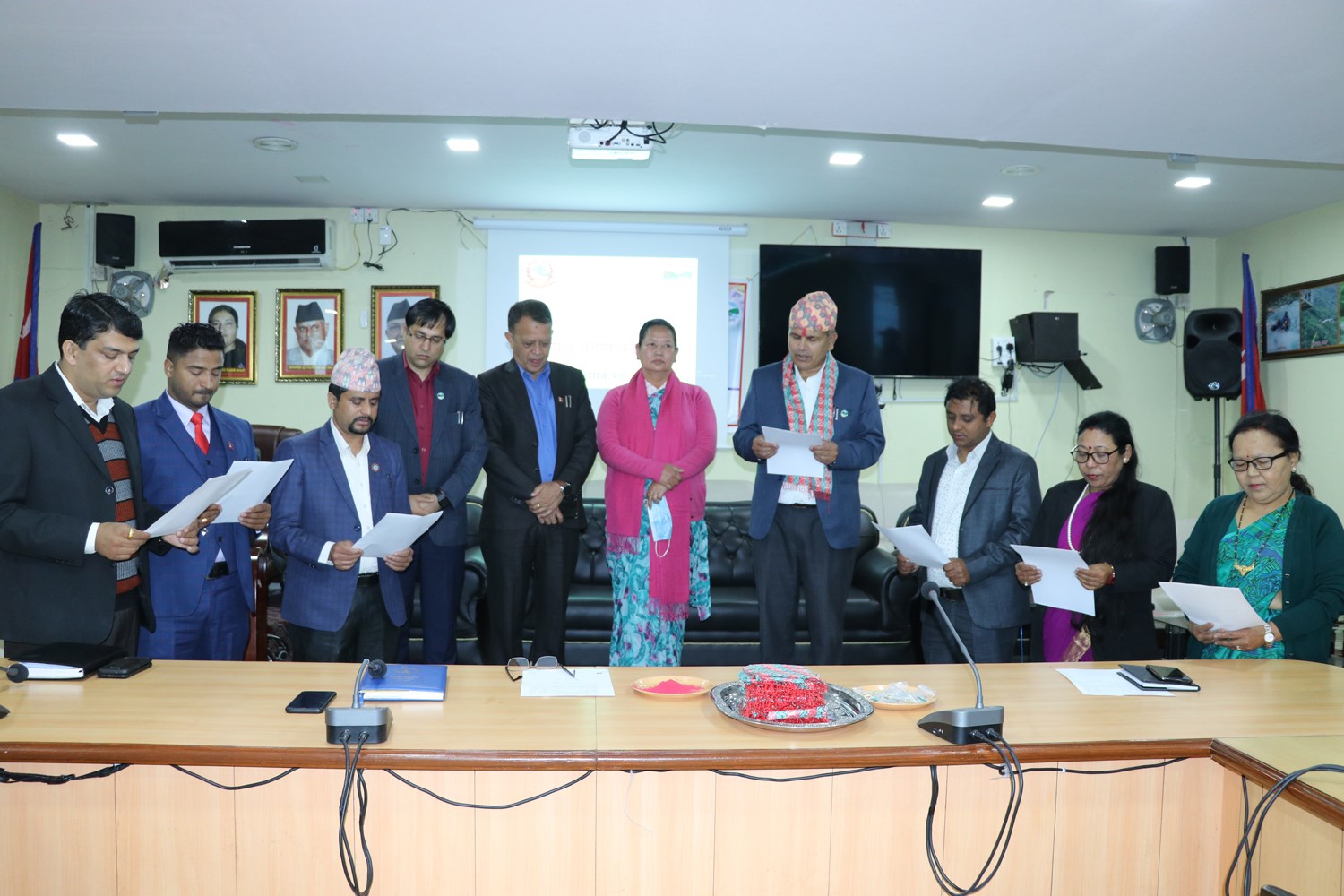 महानगरका मेयर मानबहादुर जिसीले प्रतिष्ठानका कुलपति पदमराज ढकाललाई सपथ खुवाए भने ढकालले सदस्यहरूलाई सपथ ग्रहण गराए।