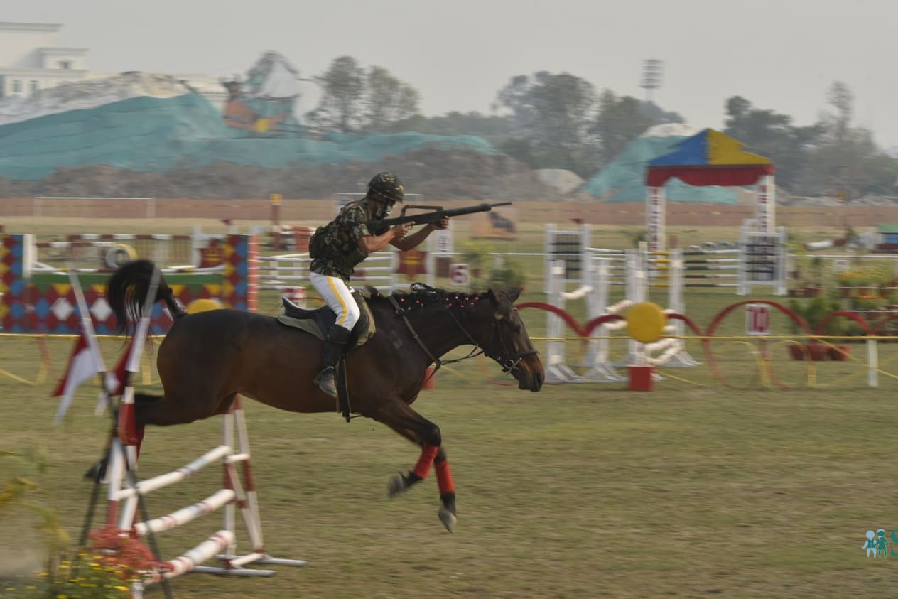नेपाली सेनाका तर्फबाट आजै टुँडिखेलमा अश्वकला, मोटरसाइकल खेल, शारीरिक व्यायाम, युद्धकलालगायतको प्रदर्शन गरिएको छ। हेर्नुहोस् तस्बिरमा