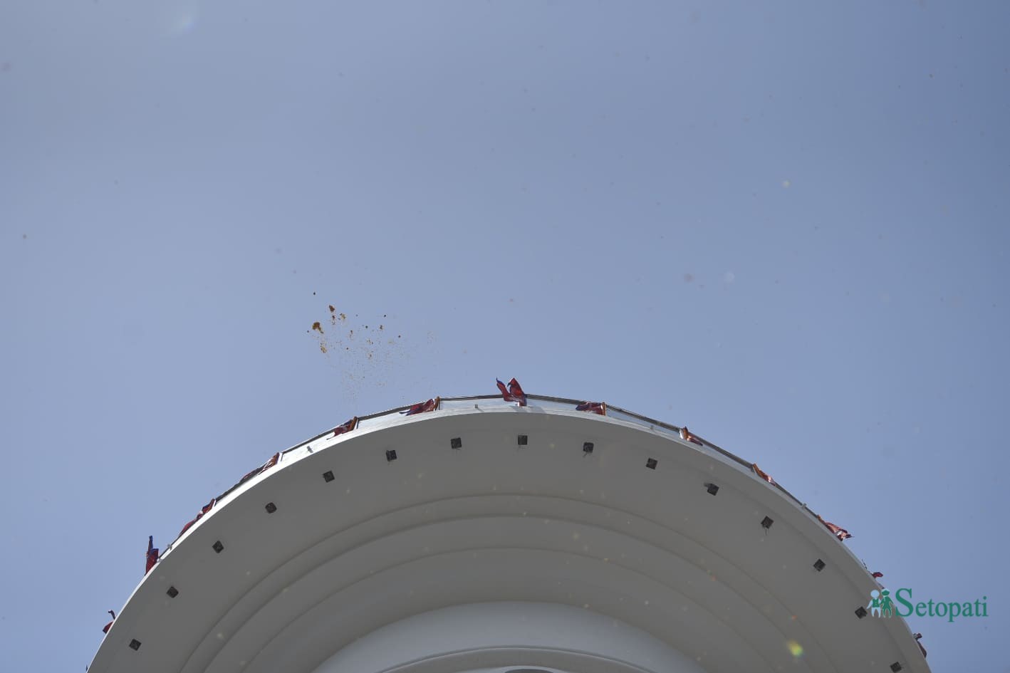 शनिबार सुन्धारास्थित धरहरा परिसरमा एक समारोहबीच पुनर्निर्मित धरहराको प्रवेशद्धारमा राखिएको शिलालेखको प्रधानमन्त्रीले अनावरण गरी ऐतिहासिक धरहराको उद्घाटन गरेका हुन्। त्यसपछि प्रधानमन्त्रीले लिफ्टबाट धरहराको २० औ तलामा पुगेर पुष्पपृष्टि गरे।