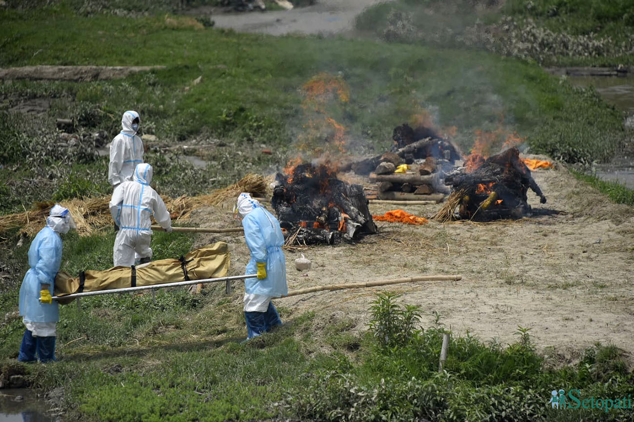 विद्युतीय शवदाह गृहमा शव लैजाने गरे पनि त्यहाँ क्षमताभन्दा धेरै शव जम्मा भएपछि बागमती किनारामा चिता बनाएर अन्त्येष्टिका काम सुरू गरिएका हुन्।