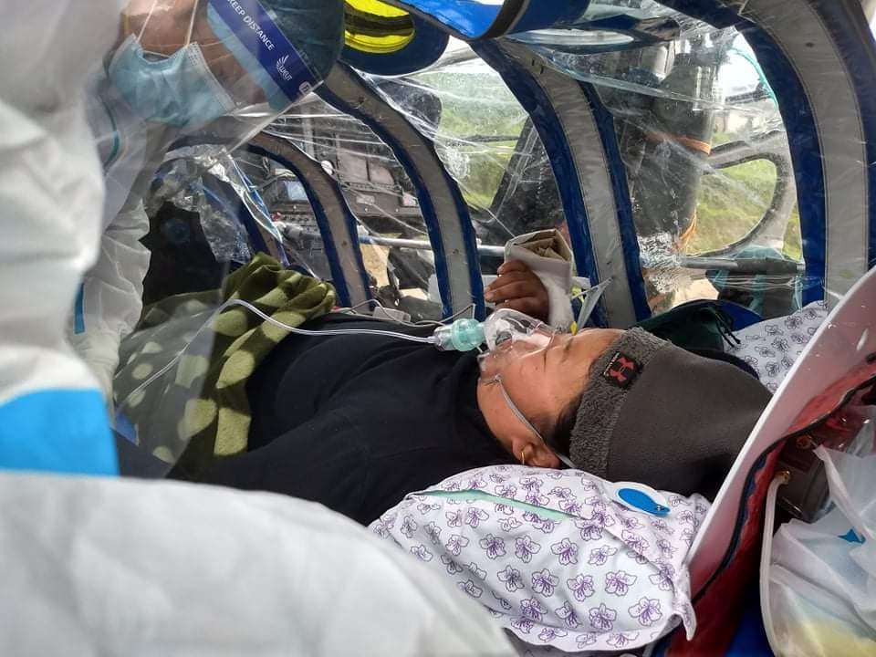 एन्टिजेन परीक्षण गर्दा रिपोर्ट पोजेटिभ आयो। उनको स्वास्थ्य अवस्था निकै नाजुक भएकाले सवारी साधनबाट अस्पताल लैजान स्वास्थ्यकर्मीले सम्भव देखेनन्।