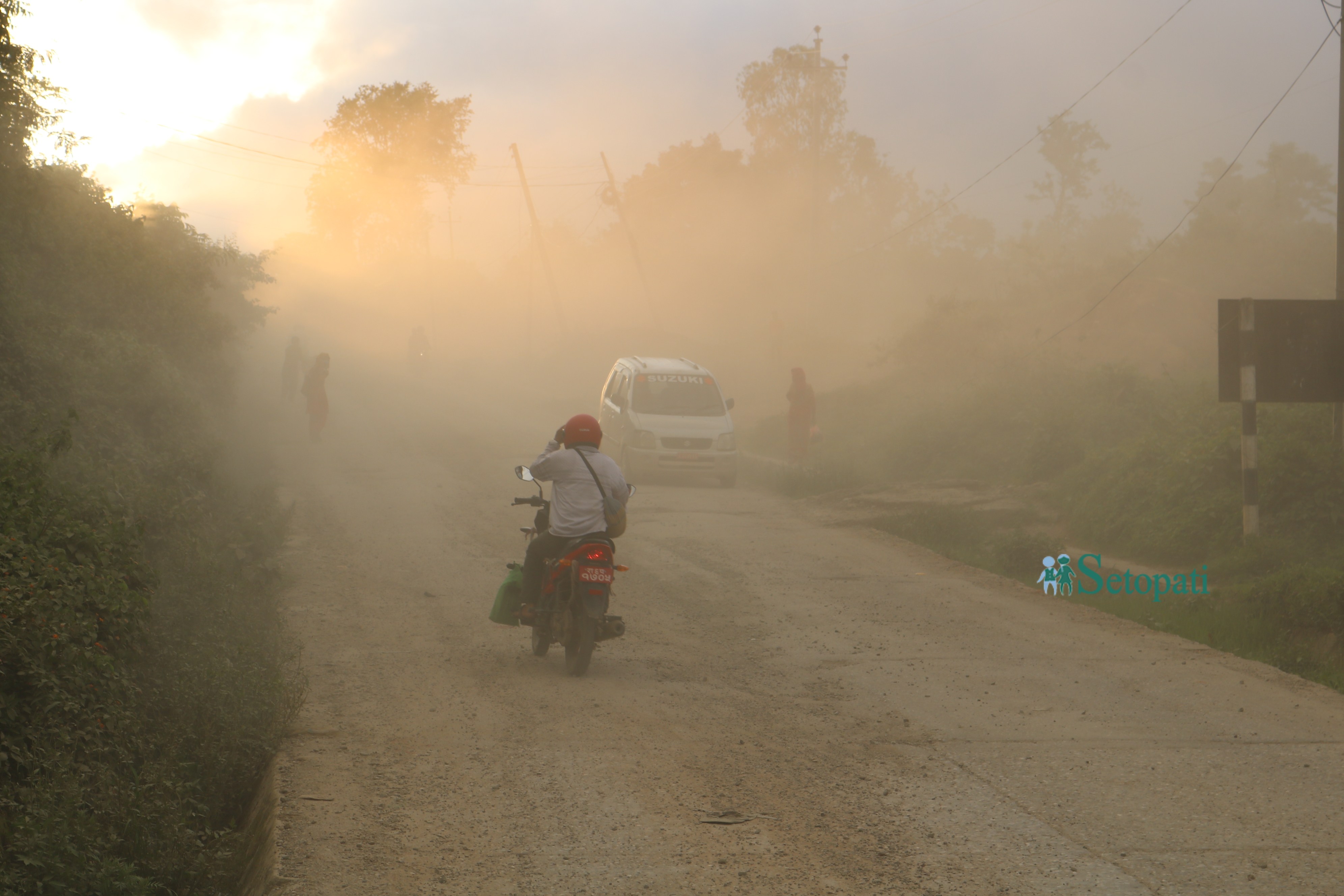 सडकको ठाउँ ठाउँमा ह्युमपाइप राख्नका लागि खनिएका खाडलहरू त्यही भएर पूर्ण समेत नभ्याएको उनको कथन थियो।