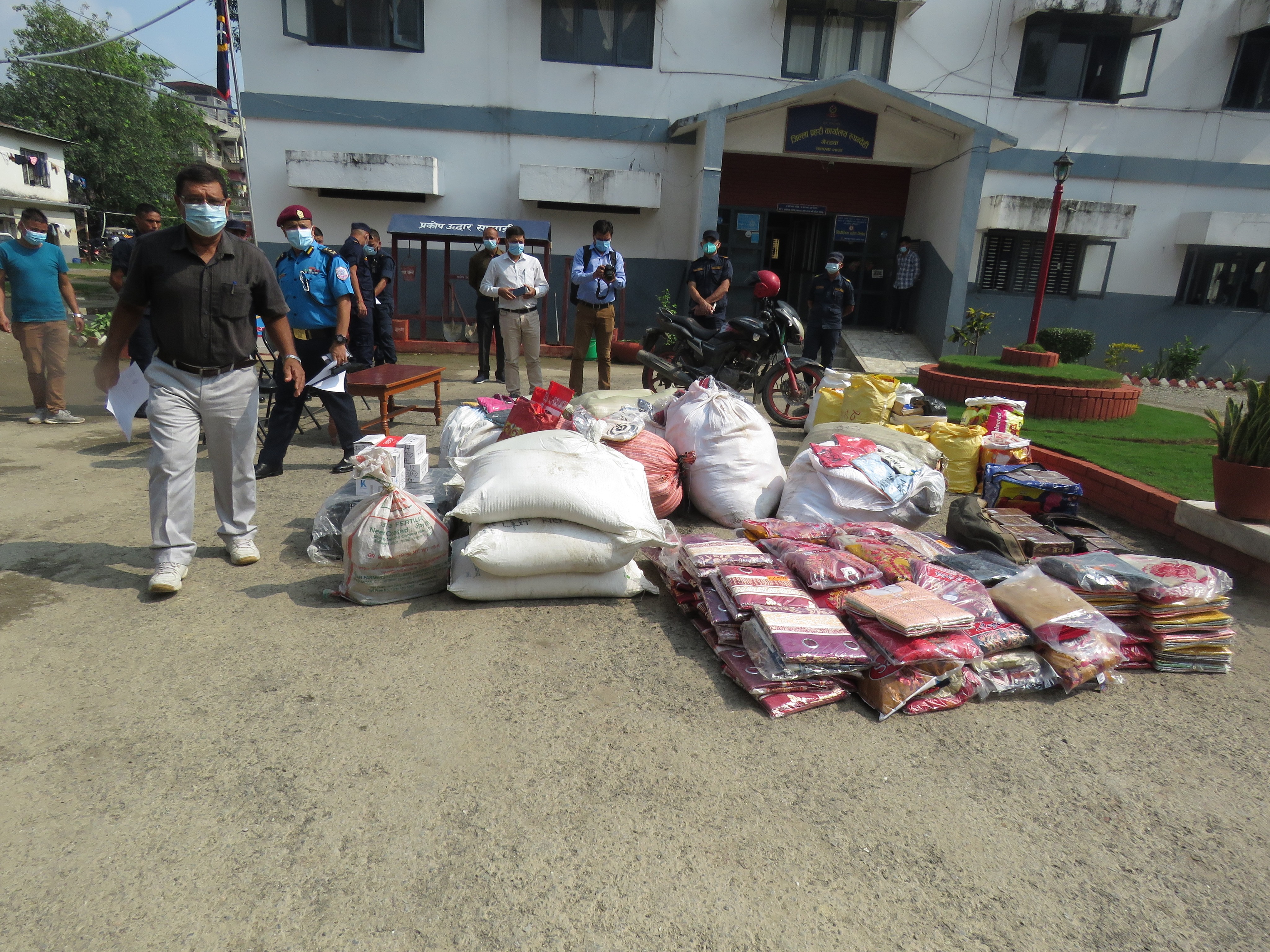 बरामद भएका सामग्रीमा खाद्यान्न र लत्ताकपडा छन्। प्रहरीले विभिन्न नाकाबाट भन्सार छलेर नेपाल ल्याइएको उक्त बराबरको सामग्री बरामदपछि भन्सार कार्यालयमै बुझाएको छ।