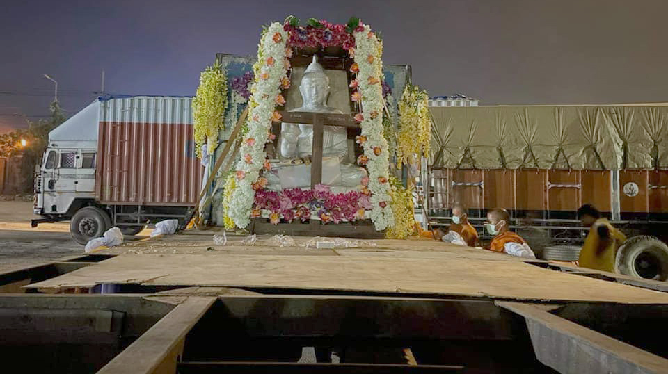 म्यान्मार, हङकङ हुँदै भारतको कोलकाता बन्दरगाहबाट शुक्रबार भैरहवा आइपुगेको उक्त मूर्तिलाई शनिबार भैरहवा र लुम्बिनी क्षेत्रका व्यवसायिक संघसंस्थाहरूले भव्य स्वागत गर्दै नगर परिक्रमा गराएका हुन्।