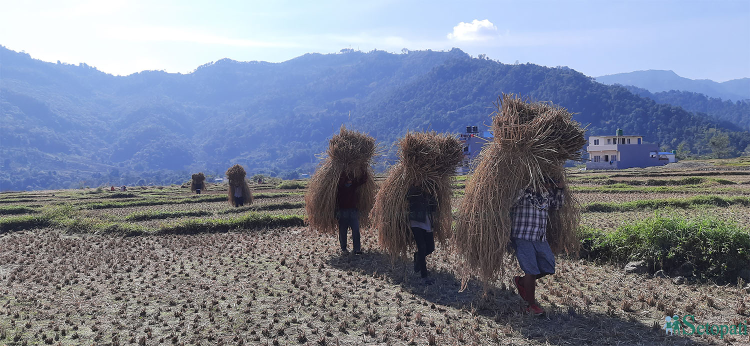 धान रोप्ने बेला मात्र होइन, मंसिर लागेपछि धान काट्ने र दाइँ हाल्नेको पनि उस्तै घुइँचो लाग्थ्यो।