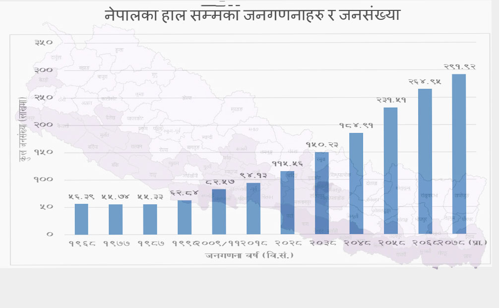 २०५८ सालमा नेपालको जनसंख्या बढेर दुई करोड ३२ लाख ५१ हजार ४२३ पुगेको विभागले जनाएको छ।