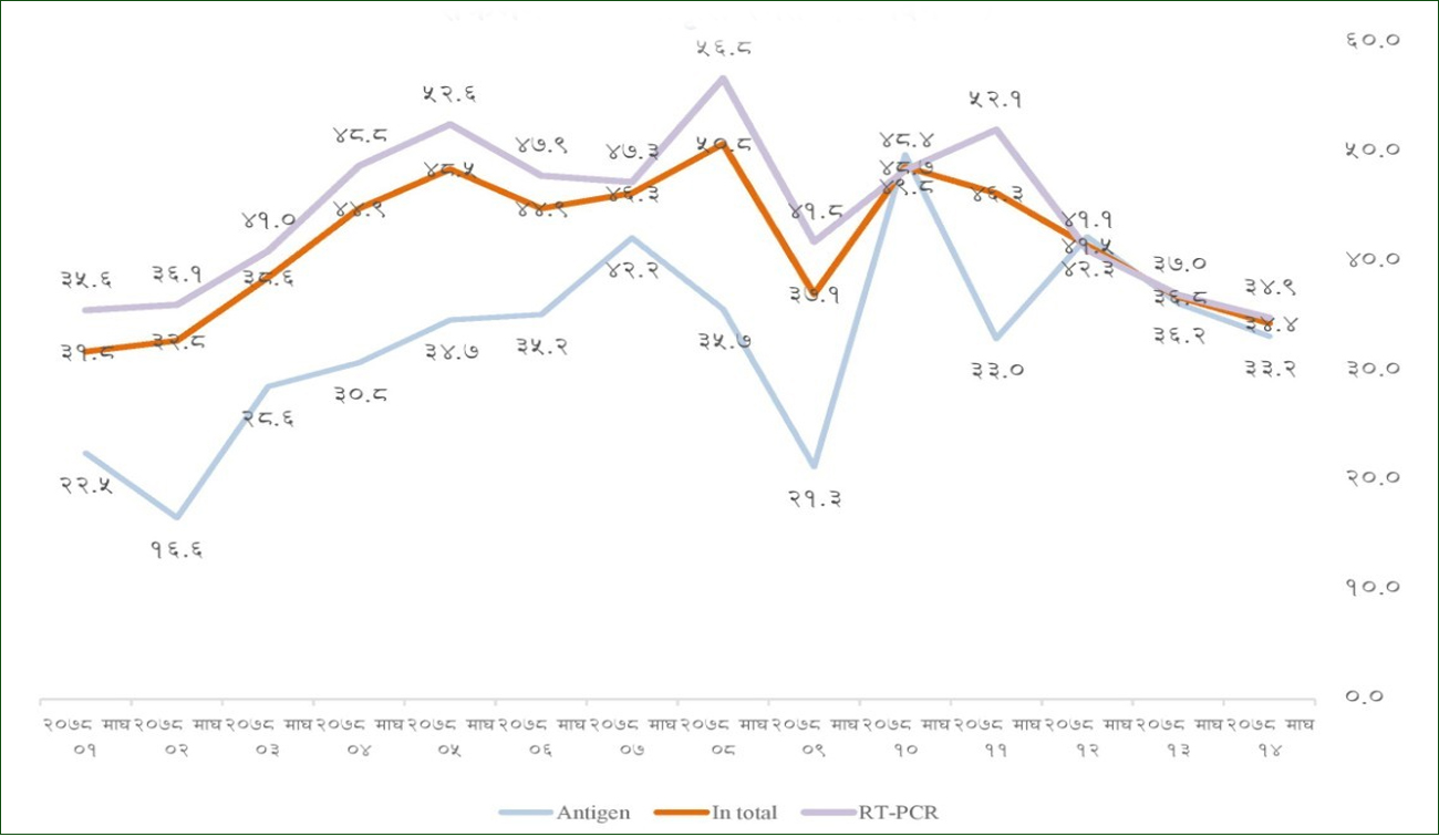 अहिले घरघरमा रूघाखोकीका बिरामी रहे पनि सबैले परीक्षण नगर्ने हुँदा संक्रमणको ठ्याक्कै अवस्था कस्तो हो भनेर भन्न नसकिने निर्देशक पौडेलले बताए। जति परीक्षण गरिएका छन्, त्यसबाट पोजेटिभ हुने संख्या घट्दै गएको उल्लेख गर्दै उनले अब संक्रमण दर घट्दै जाने विश्वास व्यक्त गरे।