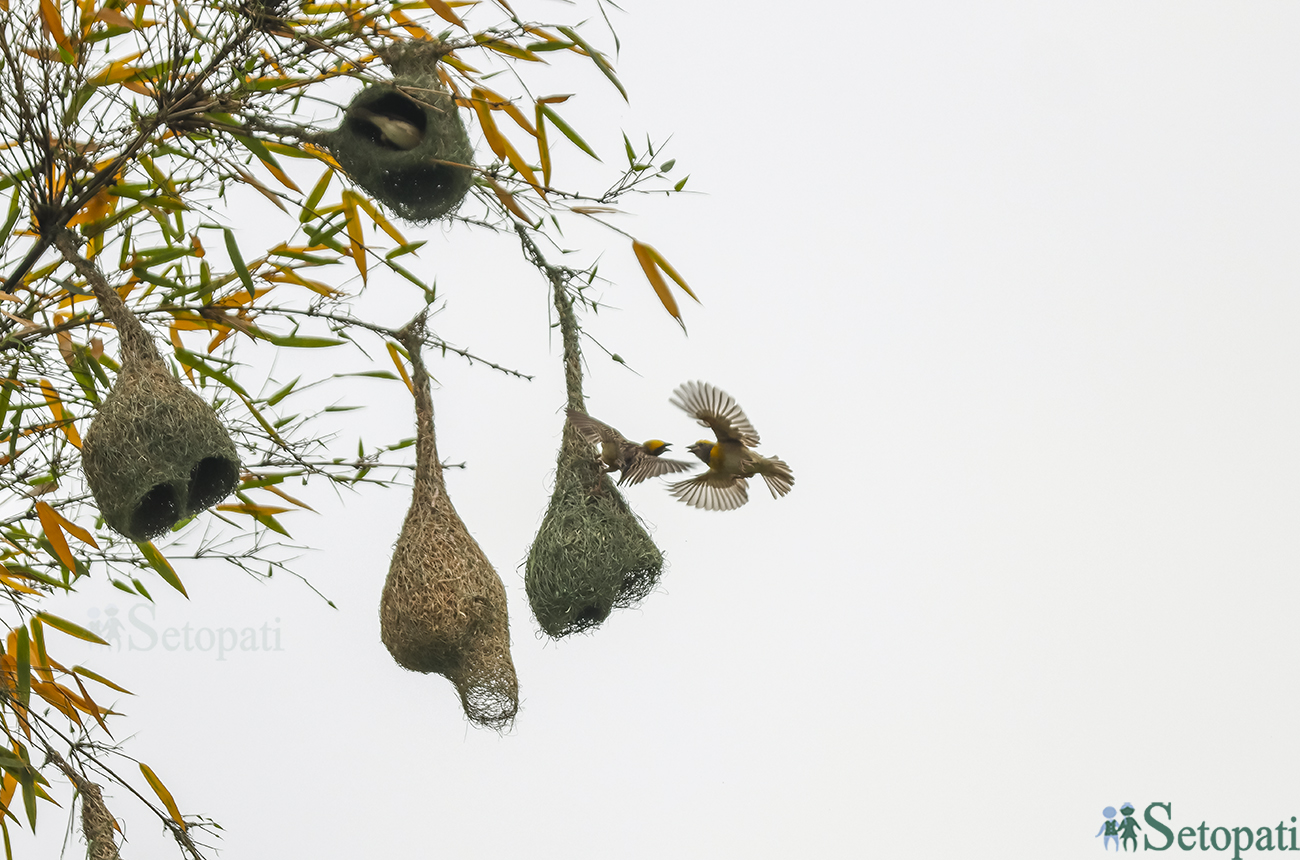 निकै आकर्षक देखिने यी चराका गुडहरू हावाको वेगसँगै हल्लिरहेका थिए भने उनीहरू हावाको चालसँगै आफ्नो गति मिलाउँदै आफ्नो काममा तल्लिन देखिन्थे।