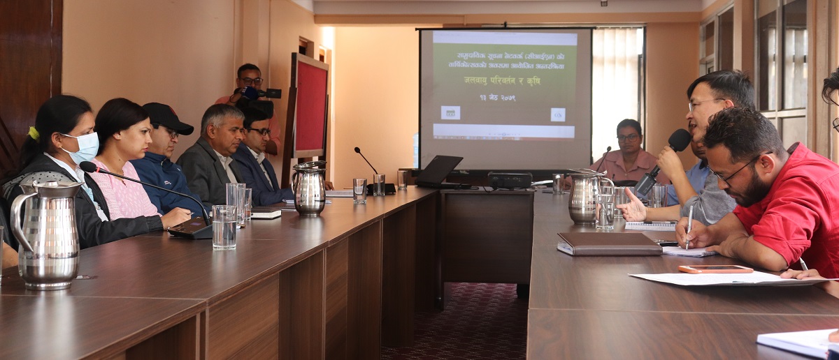 सामुदायिक सूचना नेटवर्क (सिआइएन) को १३ औं वार्षिकोत्सवमा अवसरमा आज आयोजित जलवायु परिवर्तन र कृषि विषयक अन्तरक्रियामा विज्ञहरूले किसानहरूलाई जलवायु परिवर्तनका असर र समाधानका उपायबारे जानकारी दिनुपर्ने बताए।
