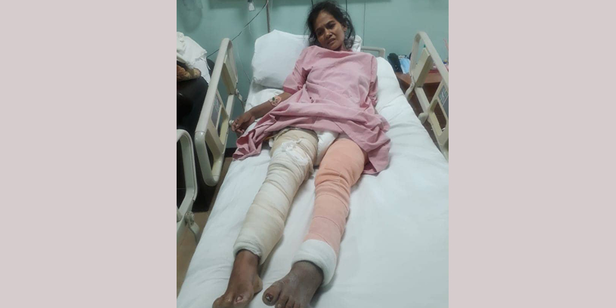 टिपरको टायर सृजनाको बाँया खुट्टालाई पेलेर गुड्यो। झन्डै ५० मिटर अगाडि भारी बोकेर हिँडिरहेका पुष्करलाई कसैले खबर गरिदियो। उनी भारी सडकमै फालेर श्रीमती सृजना भएको ठाउँ पुगे।