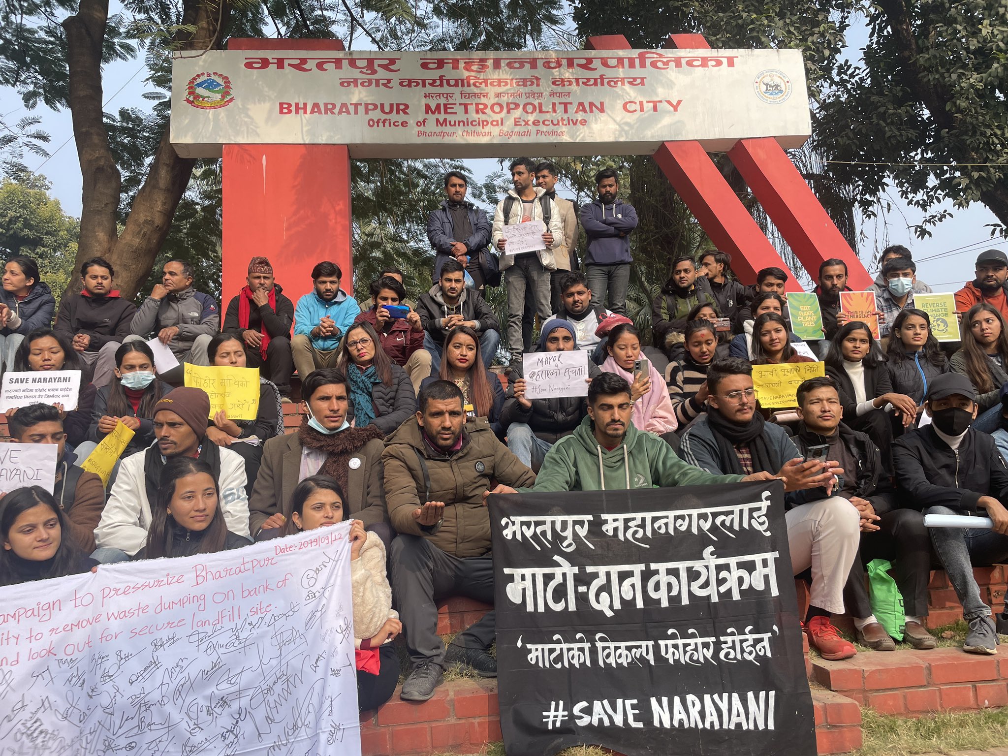 भरतपुर महानगरपालिकाले नगरेको फोहोर नारायणी नदीको किनारमा थुपार्ने गरेको छ। महानगरले फोहोर व्यवस्थापनका लागि ल्याण्डफिल साइट बनाउन कोरियन संस्थासँग सम्झौता गरेपनि काम अघि बढ्न सकेको छैन। नयाँ विकल्प तयार नहुँदासम्म नारायणी नदी किनारमा फोहोरको व्यवस्थापन गर्नुपर्ने बाध्यता भएको महानगरका वातावरण शाखाका प्रमुख इन्जिनियर विराट घिमिरे बताउँछन्।