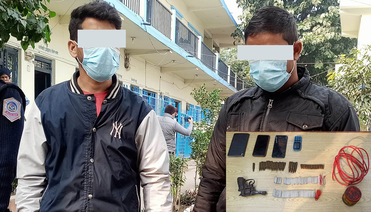इलाका प्रहरी कार्यालय बुटवलका प्रमुख प्रहरी नायब उपरीक्षक दानबहादुर थापाका अनुसार उनीहरूलाई सोमबार बुटवल वडा नं. ११ देवीनगरबाट रिभल्वर र विभिन्न हात हतियारमा लाग्ने ३५ राउण्ड गोलीसहित पक्राउ गरिएको हो।