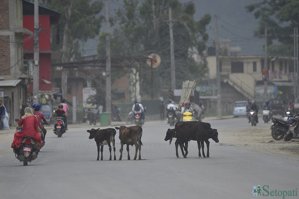 ‘हाम्रो पालिकामा पर्ने वनहरादेखि मोहना चोकसम्म राजमार्गमा मुश्किलले अब छाडा पशु देख्नु हुन्छ’, उनले भने, ‘यहाँका धेरै ठाउँमा काञ्जी हाउस बनाएर करिब एक हजारदेखि एघार सय चौपायाको व्यवस्थान गरिहेको छ।’