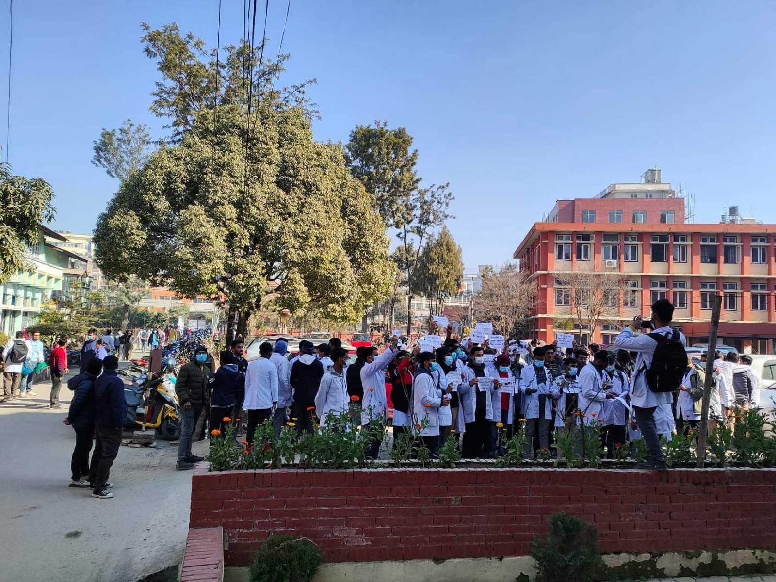 त्रिभुवन विश्वविद्यालय चिकित्सा शास्त्र अध्ययन संस्थान (आइओएम), महाराजगञ्ज मेडिकल क्याम्पसमा एमबिबिएस पढिरहेका विद्यार्थीहरू सोमबारदेखि आन्दोलनमा छन्।