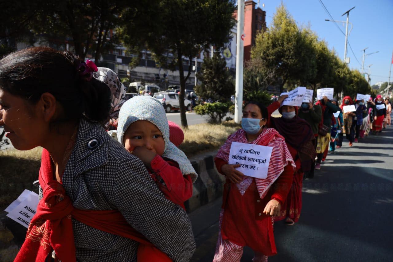 भु-स्वामित्वसहितको लालपुर्जा वितरण गर, स्थायी विकल्प बिना उठिबास बन्द गर, भूमि अभियन्तामाथि लगाइएका झुटा मुद्दा निःशर्त तत्काल फिर्ता गर लगायतका प्लेकार्ड बोकेर प्रदर्शन भएका थिए।
