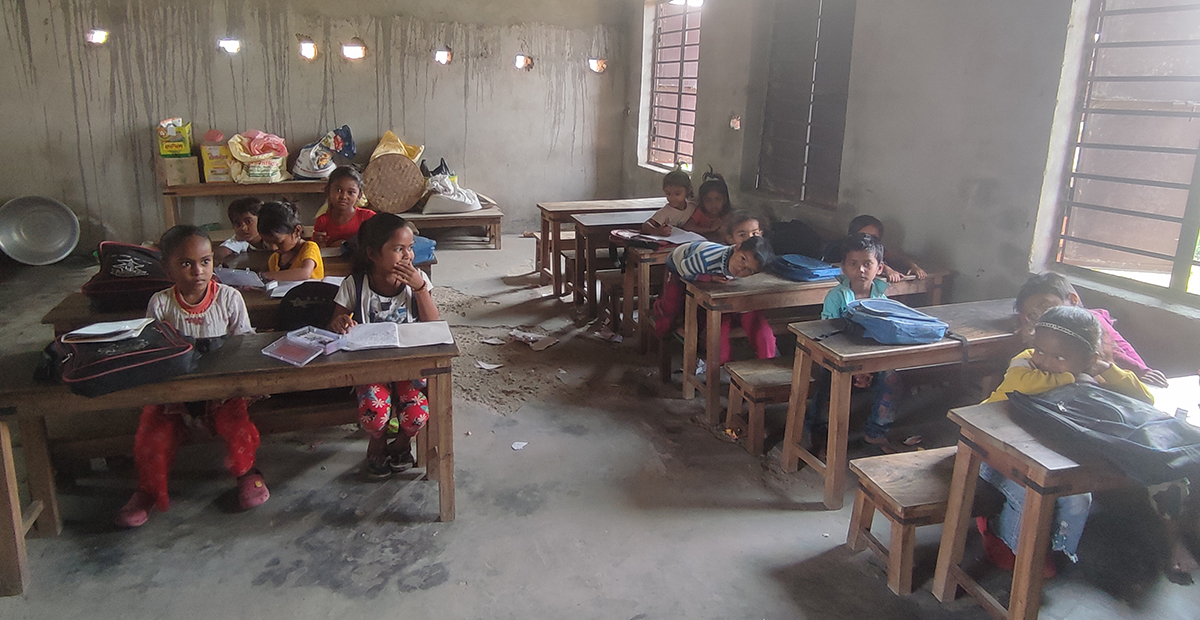 ‘एउटै कक्षामा फरक/फरक दुई कक्षाका विद्यार्थी राखेर पढाउन थालिएको वर्षौं भइसक्यो, के गर्नु बाध्यता यस्तै छ’, उनले भने, ‘विद्यालयको आम्दानी छैन, अरूलाई भवन बनाएर सहयोग गरिदिन भनेको वर्षौं भइसक्यो तर कसैले सुनेनन्, अब त थाकिसकेँ!’