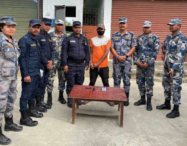 सप्तरी छिन्नमस्ता गाउँपालिका-२ मौवा बस्ने २८ वर्षीय सोनु रायलाई पक्राउ गरेको हो। उनले कम्मरमा मेड इन युएसए लेखिएको पेस्तोल बोकेका थिए।