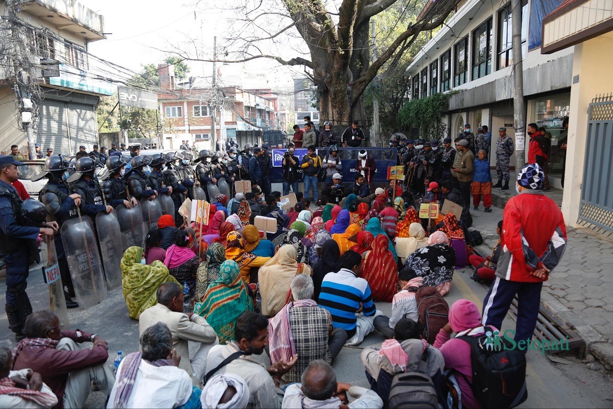 मिटरब्याज पीडितहरू ११ दिन हिँडेर आइतबार काठमाडौं आइपुगेका थिए। आइतबार मातातिर्थमा बसेका उनीहरू सोमबार राति खुलामञ्चमा बस्न खोजेका थिए।