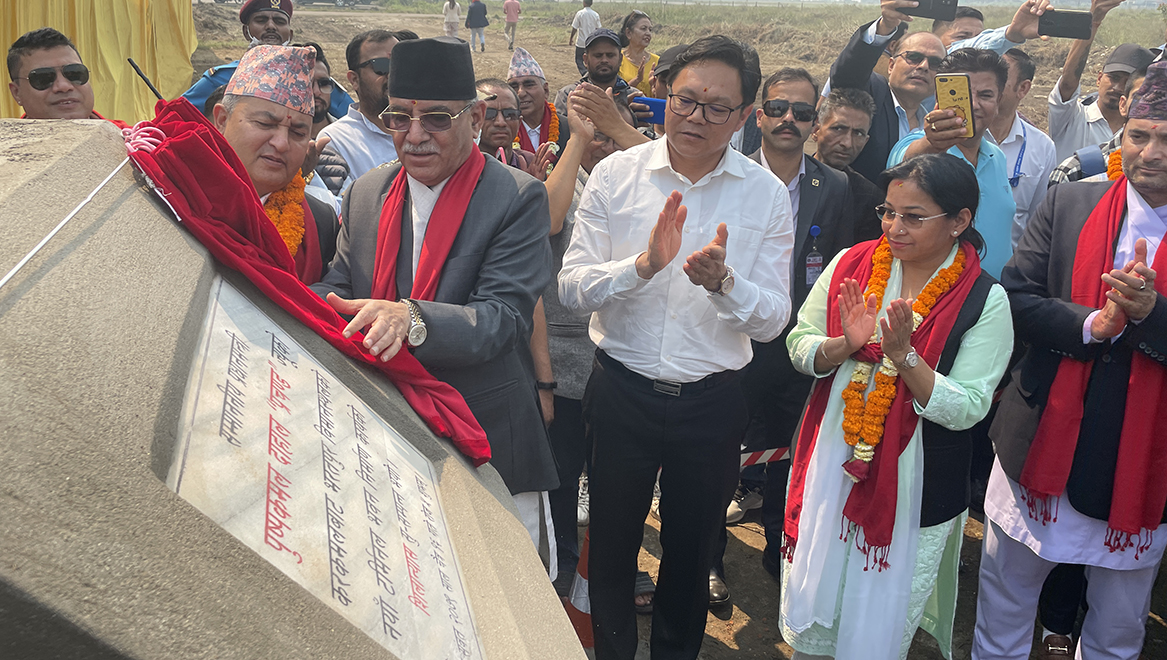 प्रधानमन्त्री पुष्पकमल दाहाल ‘प्रचण्ड’ले भरतपुर विमानस्थलको नयाँ टर्मिनल भवनको शिलान्यास गरेका छन्। एक अर्ब ९२ करोड ७० लाख ९८ हजार ९७७ रुपैयाँ बजेटमा बन्न लागेको टर्मिनल भवनको प्रधानमन्त्री दाहालले बिहीबार शिलान्यास गरेका हुन्।
