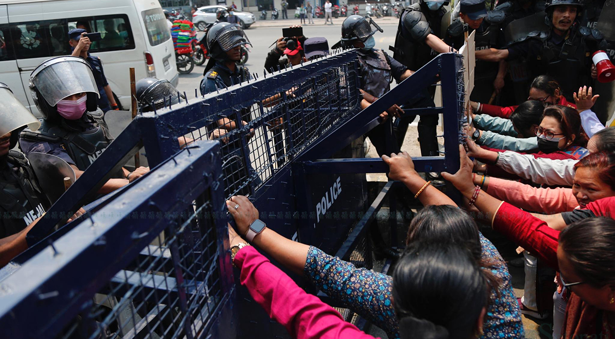 बानेश्वरमा द्वन्द्व पीडित र प्रहरीबीच धकेलाधकेल भएको छ।