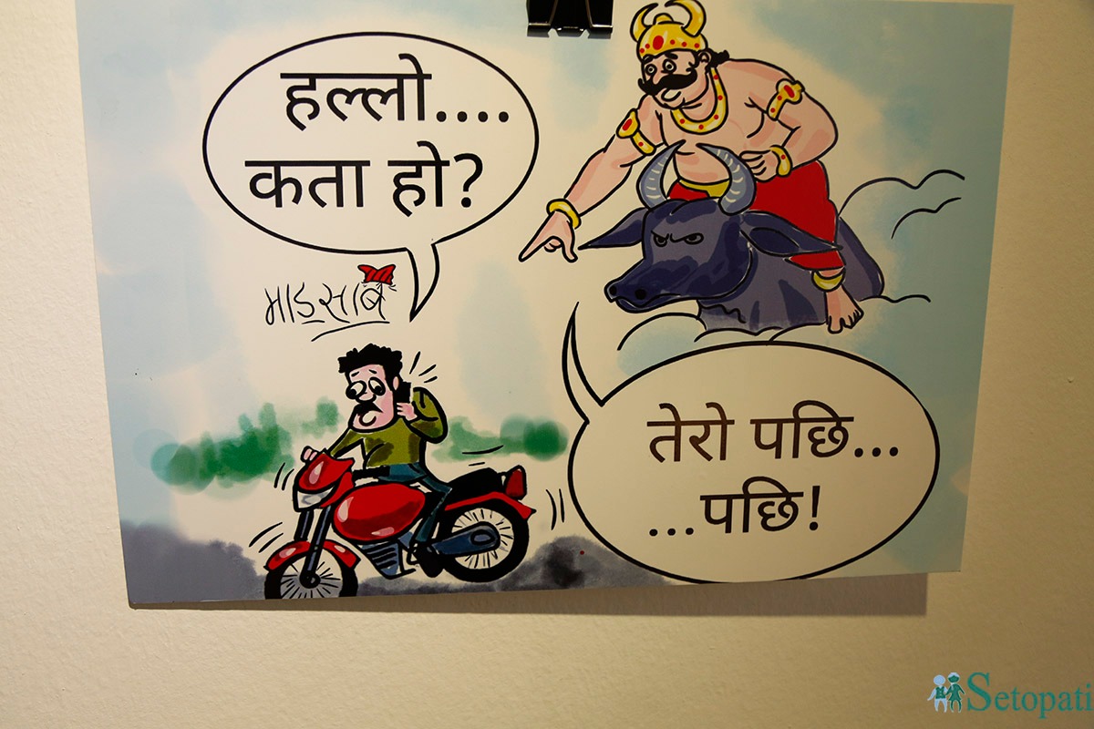 नेपाल आर्ट काउन्सिल परिषद्मा अहिले सडक सुरक्षासम्बन्धी विभिन्न कार्टुनहरू प्रदर्शनीमा राखिएको छ।