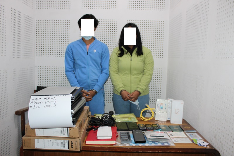 प्रहरीले उनीहरूबाट ११ वटा ल्यापटप, मोबाइल र अन्य आइटीका सामानहरू बरामद गरेको छ।