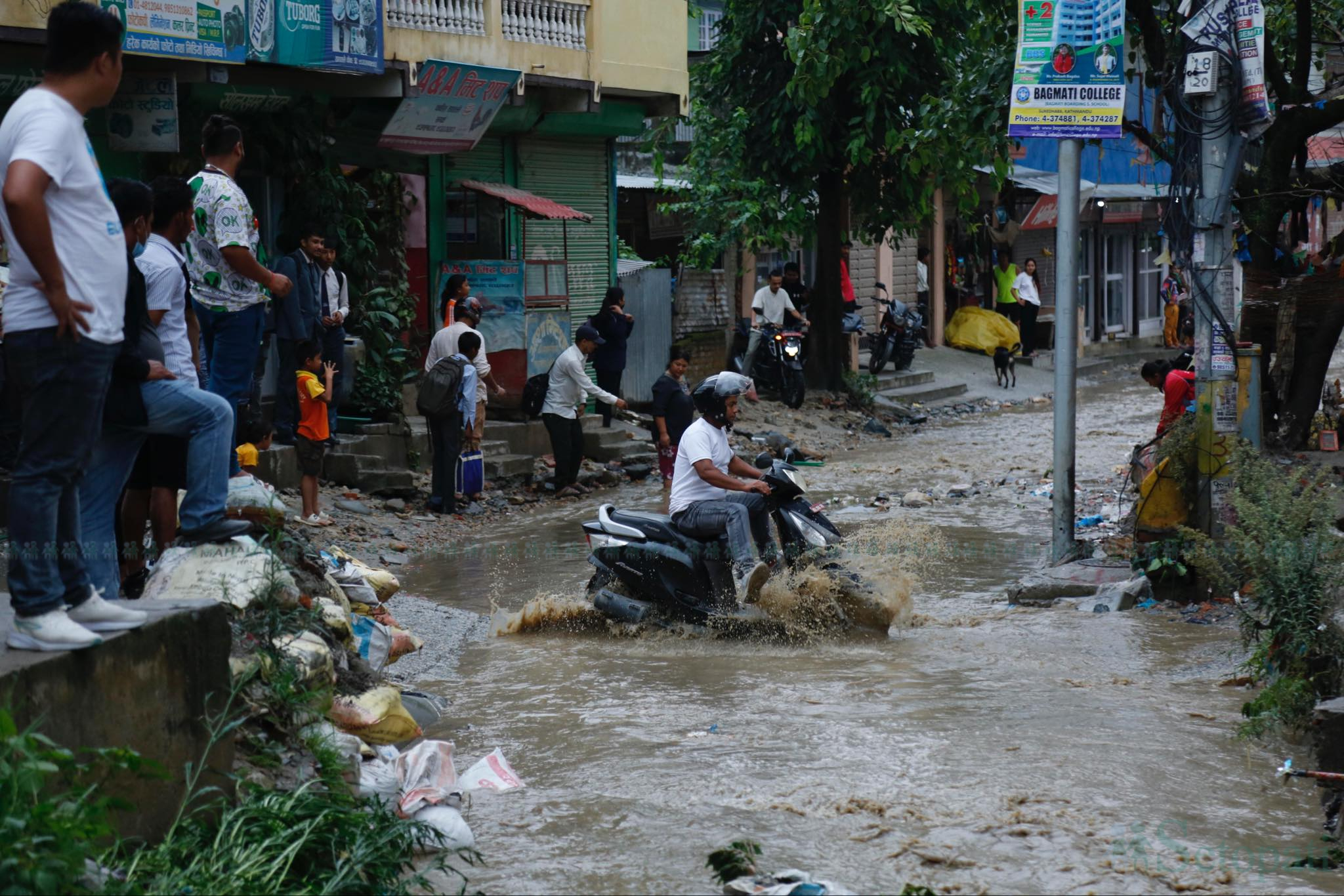 सोमबार दिउँसोको वर्षापछि कपन क्षेत्रमा बाढी आएको हो। बर्खाका बेला बर्सेनि यो क्षेत्रमा बाढीको समस्या देखिन्छ।
