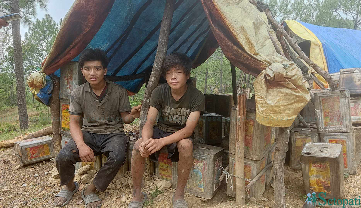 रोल्पाको रून्टीगढी गाउँपालिकाका-१ गौरीगाउँका २२ वर्षीय सुरेश बुढा मगर र १७ वर्षीय नवीन बुढा मगर चार महिनादेखि जंगलमै बसेर खोटो संकलन गरिरहेका छन्।