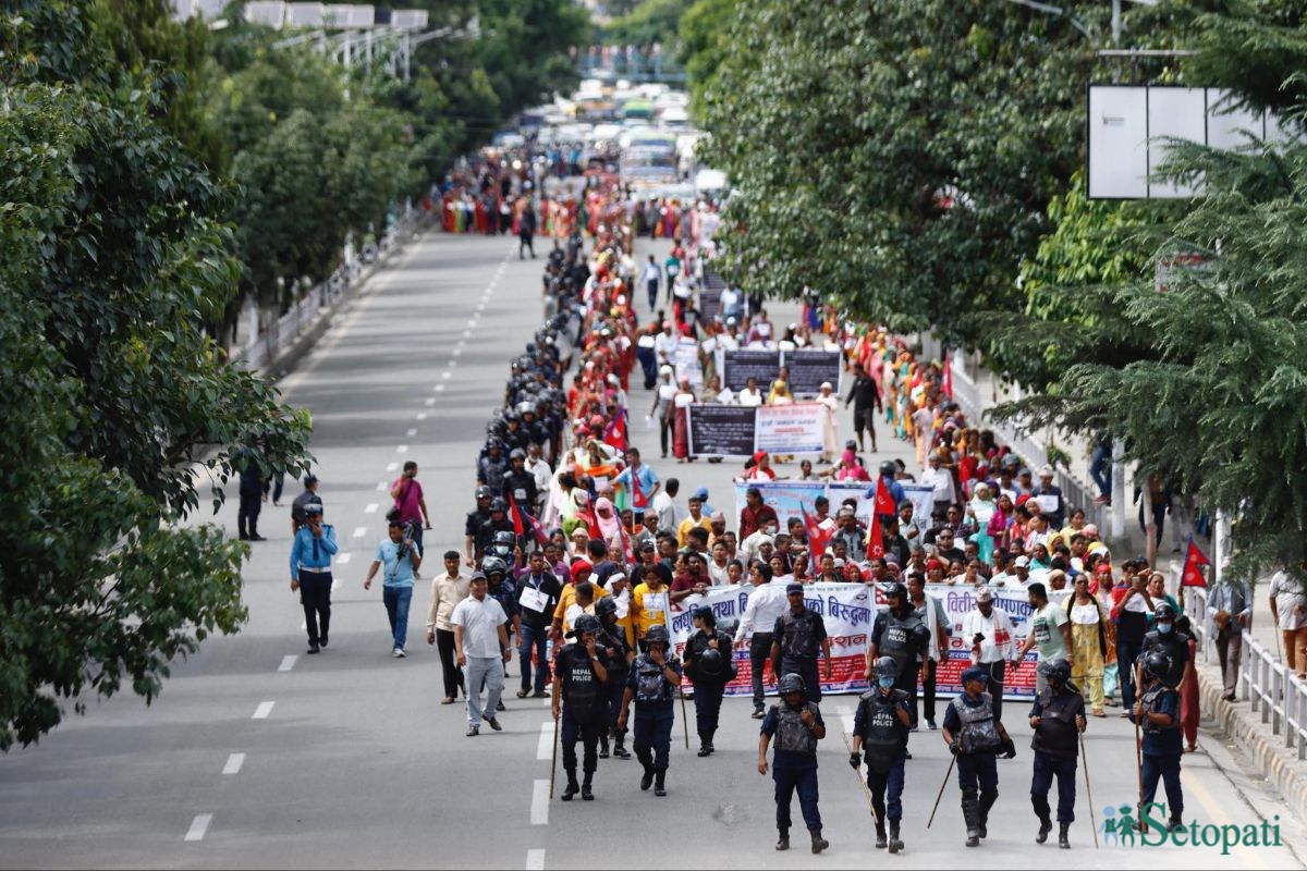 उनीहरूले माइतीघर मण्डलबाट जुलुस निकालेर थापाथली, त्रिपुरेश्वर, सुन्धारा, जमल, घण्टाघर हुँदै भद्रकालीसम्म पुगेका थिए।