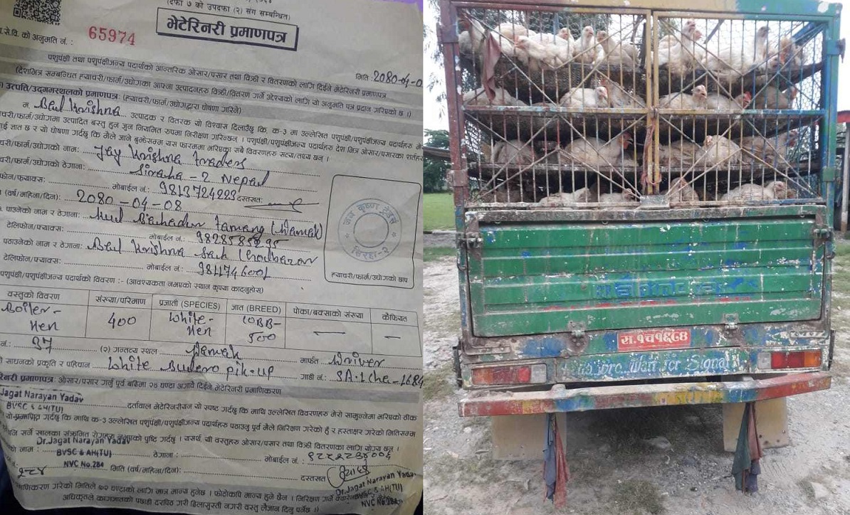 उनका अनुसार स १ च १६८४ नम्बरको जिप र त्यसमा रहेका ४०० वटा भारतीय जिउँदो ब्रोइलर कुखुरा बरामद भएको हो।