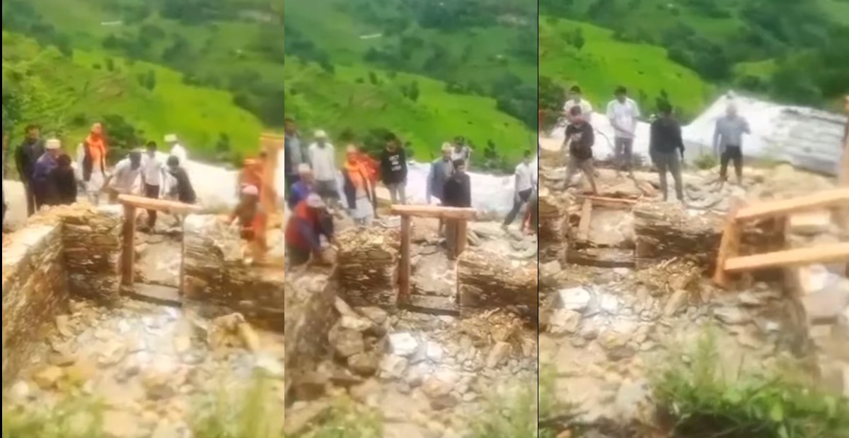 बझाङको बित्थडचिर गाउँपालिकामा करण ओखेडाले बनाइरहेको घर सार्वजनिक जग्गामा परेको भन्दै गाउँलेले भत्काएका हुन्।