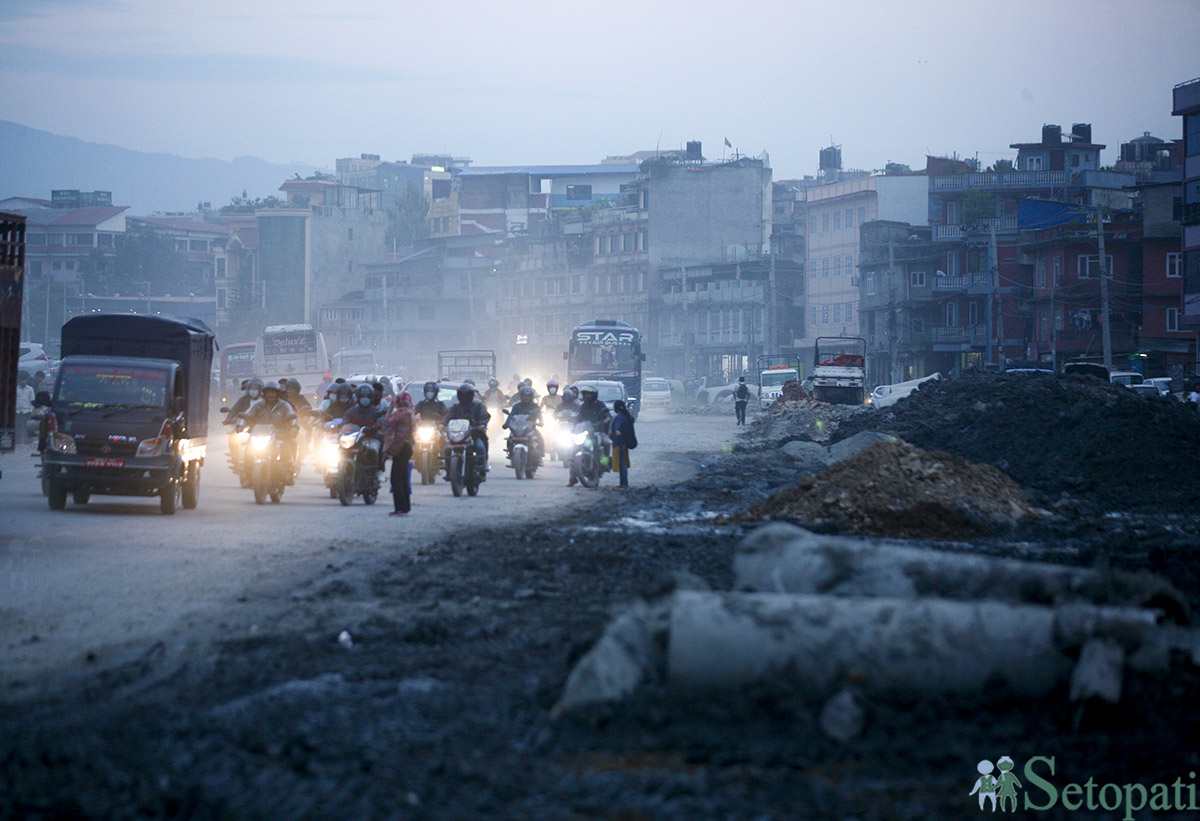 सर्भिस लेन बनाउने र ढल बिछ्याउने काम भइरहेकाले अहिले गोंगबु-सामाखुसीको चक्रपथ घाम लाग्दा धुलो र पानी पर्दा हिलो हुने गरेको छ।