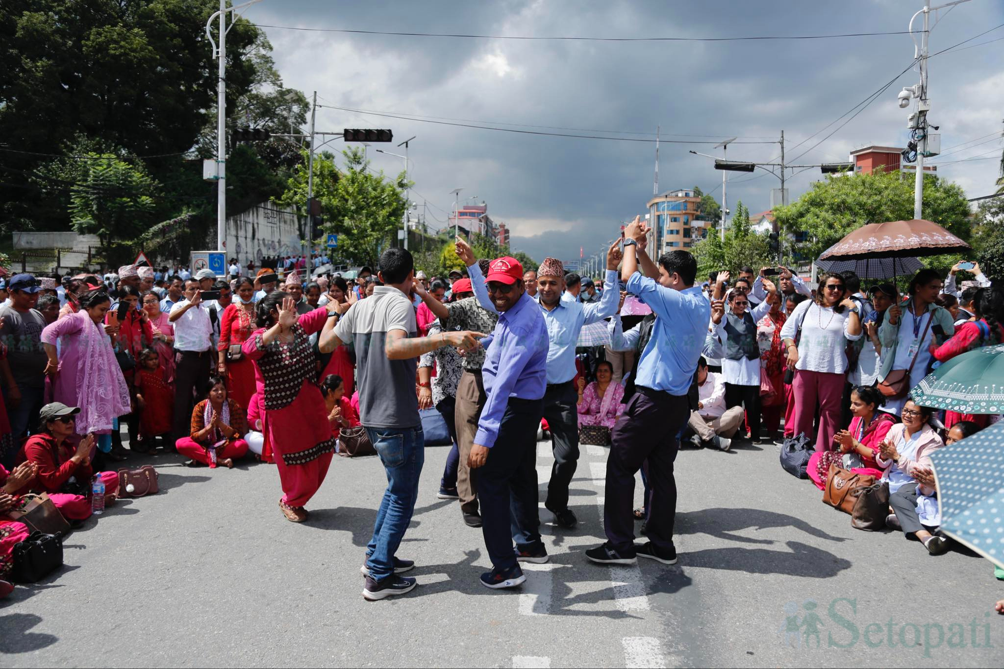 आन्दोलन गर्दै बानेश्वर पुगेका कोही शिक्षकहरू भने नाचगानमा व्यस्त देखिन्छन्। समूह-समूह बनाएर शिक्षकहरू नाच्दै गाउँदै गरिरहेका छन्।
