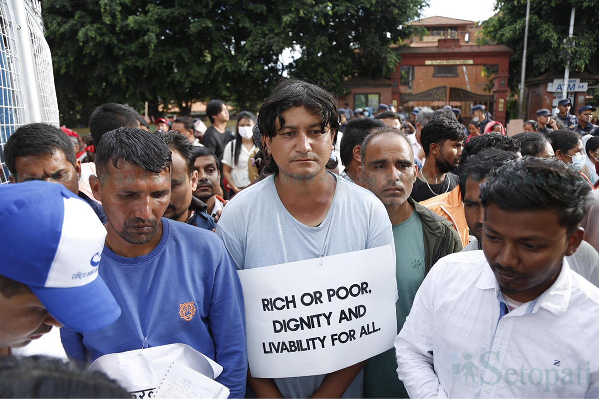 भित्र वार्ता चलिरहँदा राष्ट्रिय सभागृह बाहिर भने सडक व्यवसायीहरू ऐक्यबद्धता जनाउन आएका छन्।
