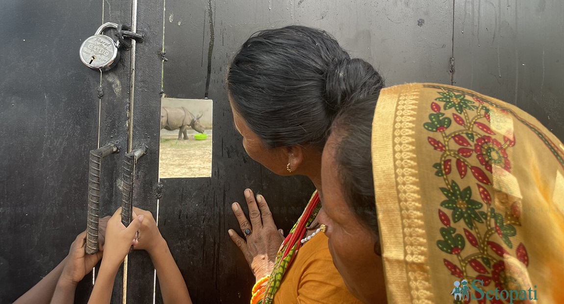 ‘हामी महिलाहरू घर छाडेर अन्त जाँदैनौं। छोरा मान्छेहरू गैंडाको विषयमा कुरा गर्छन्। गैंडा भयो भने विदेशी आउँछन्, पैसा आउँछ भन्थे,’ उनले भनिन्, ‘कस्तो हुन्छ होला भन्ने लागेको थियो। आज देख्न पाइयो।’