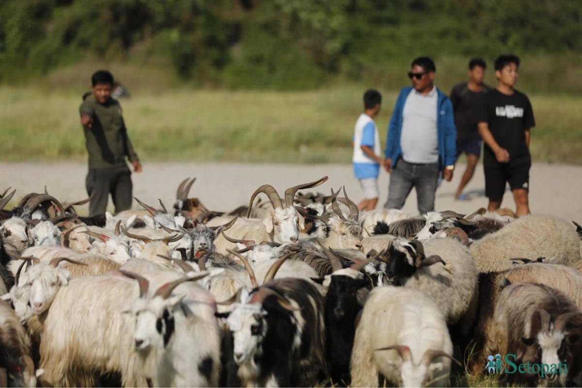 दसैंमा मासु खानका लागि ल्याइएका च्याङ्ग्राको आइतबारदेखि बिक्री सुरू गरिएको छ। ब्यापारीहरूले तिब्बतबाट पनि च्याङ्ग्रा ल्याएको बताएका छन्।