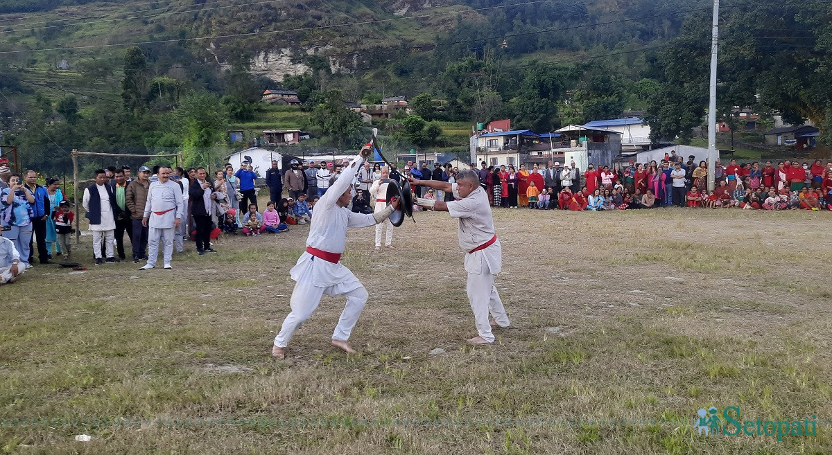 शनिबार पनि पोखराको रामघाटबाट पठाइएको फूलको डोली सुरक्षा गर्न कास्कीकोट दरबारबाट युवाहरू खुँडा, तरबार, ढाल लगायत हातहतियार समातेर निस्किए। पञ्चेबाजा, काल लगायत बाजागाजामार्फत राग बजाएर उनीहरू बाटोमा युद्ध कौशल देखाउँदै धुपीचौरू मैदान पुगे।