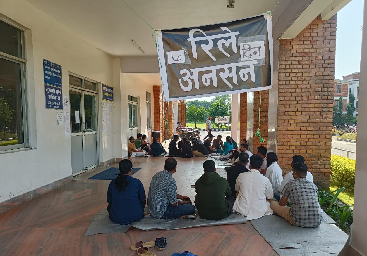 विद्यार्थीहरूले मेडिकल कलेजको ओपिडी बलकको ढोकामै आठ दिनदेखि रिले अनशन जारी राखेका छन्।