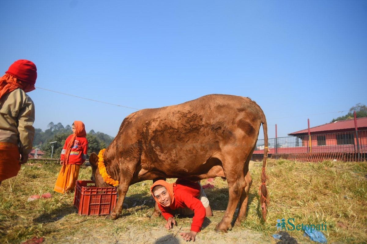 काठमाडौंको पशुपतिनाथमा गाईपूजा गरिएको छ।