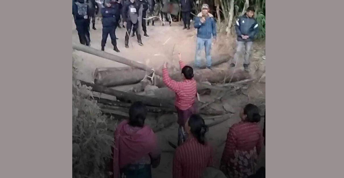 त्यस क्षेत्रका केही स्थानीयले रूख ढालेर बाटो अवरूद्ध गर्नुका साथै सुरक्षाकर्मीहरूलाई ढुंगामुढा गर्दै आक्रमण गरेका छन्। त्यस क्रममा केही प्रहरी घाइते भएका छन्। प्रहरीले आक्रमणमा संलग्न ४ जनालाई नियन्त्रणमा लिएको छ।