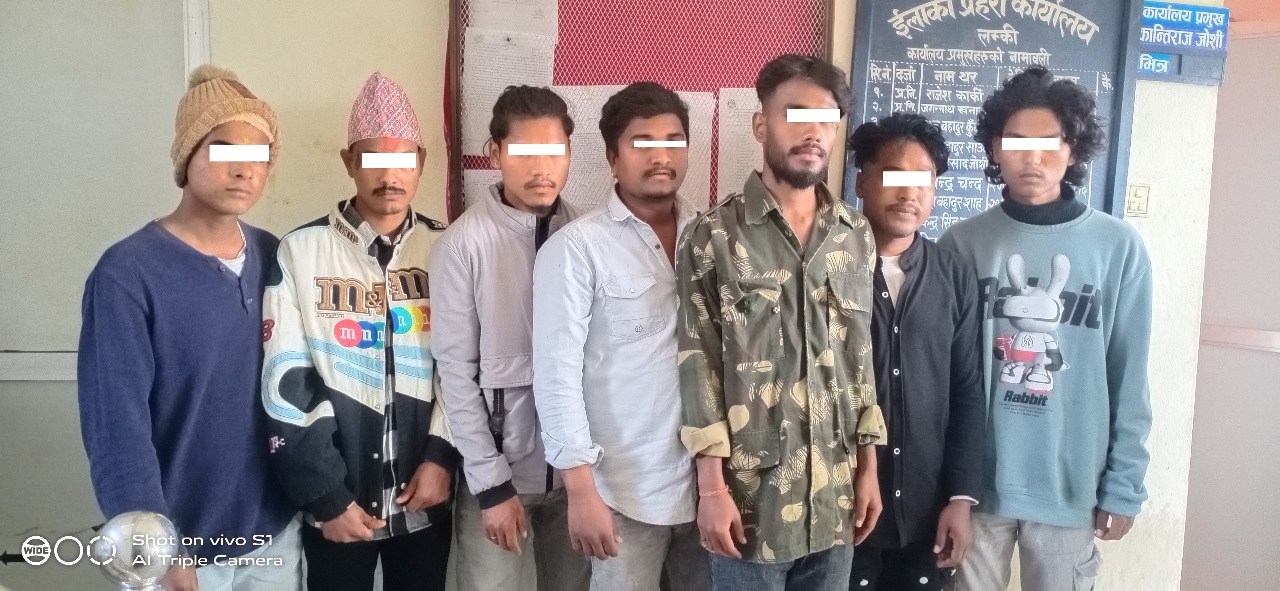 त्यस्तै सोही नगरपालिकाका २८ वर्षीय विर्ख भुल, २४ वर्षीय सोनु साउद, २३ वर्षीय चक्र कुँवर, २० वर्षीय अकेश कुँवर, २३ वर्षीय निवन के.सी, २५ वर्षीय रामलाल चौधरी र २४ वर्षीय विशाल कुमाललाई पक्राउ गरिएको इन्स्पेक्टर बस्यालले जानकारी दिए।