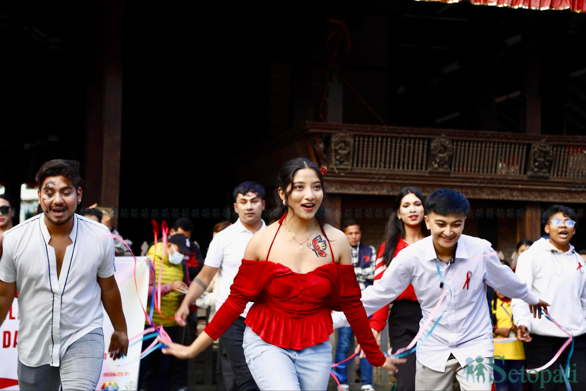 विश्व एड्स विरूद्धको दिवसमा बसन्तपुरमा 'फ्ल्यास मब' (तस्बिरहरू)