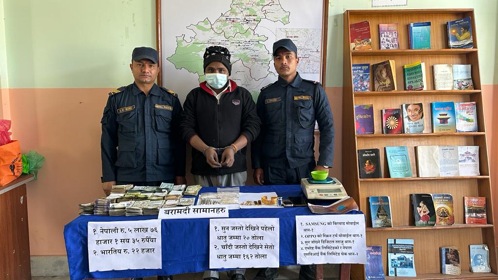 उनीबाट बिल नभएको २२ लाख ६१ हजार ९०१ रुपैयाँ बराबरको २३५.९ ग्राम सुन बरामद भएको हो। यस्तै २ लाख ४३ हजार २६५ रुपैयाँ बराबरको १९०१.२६ ग्राम चाँदी पनि प्रहरीले बरामद गरेको हो।